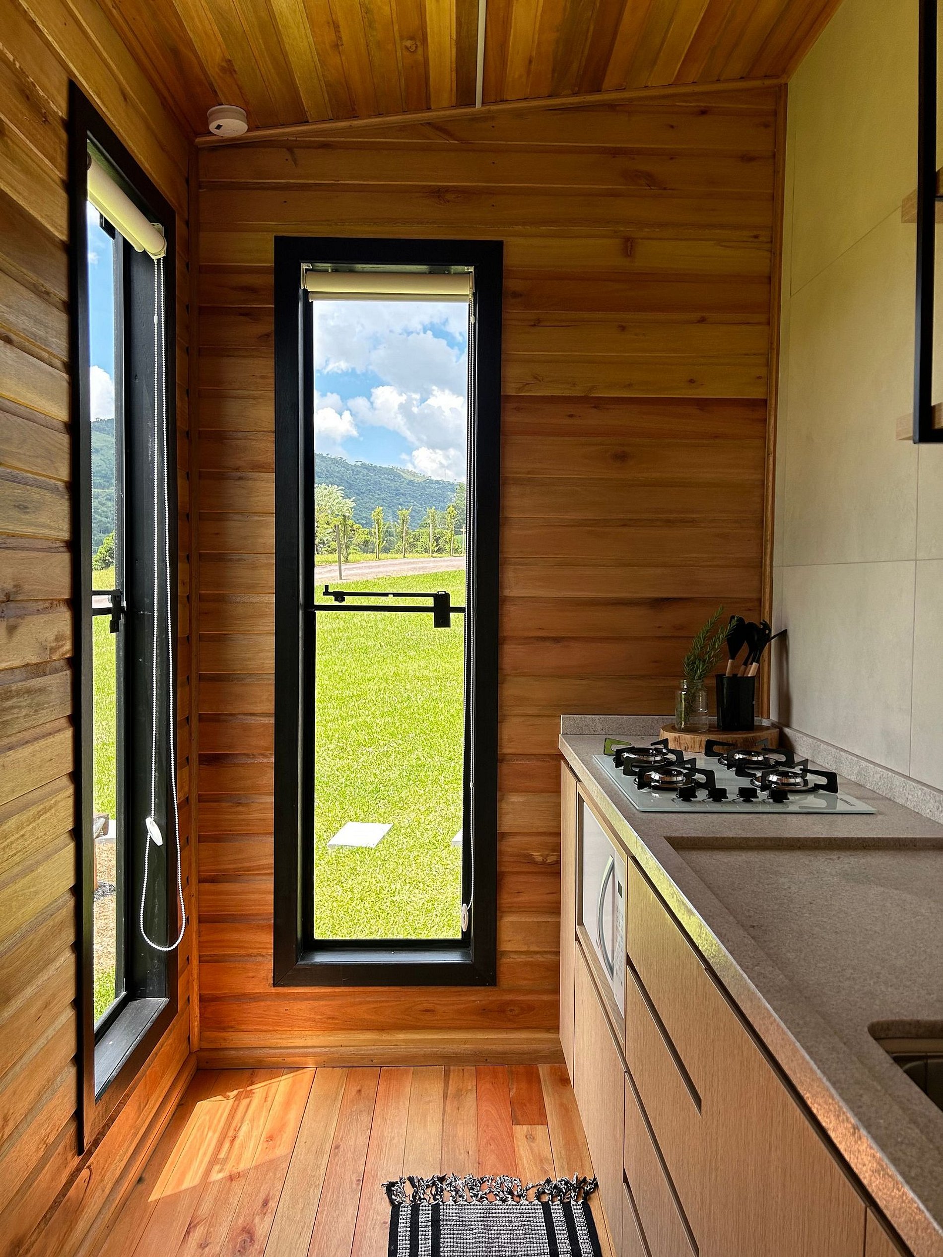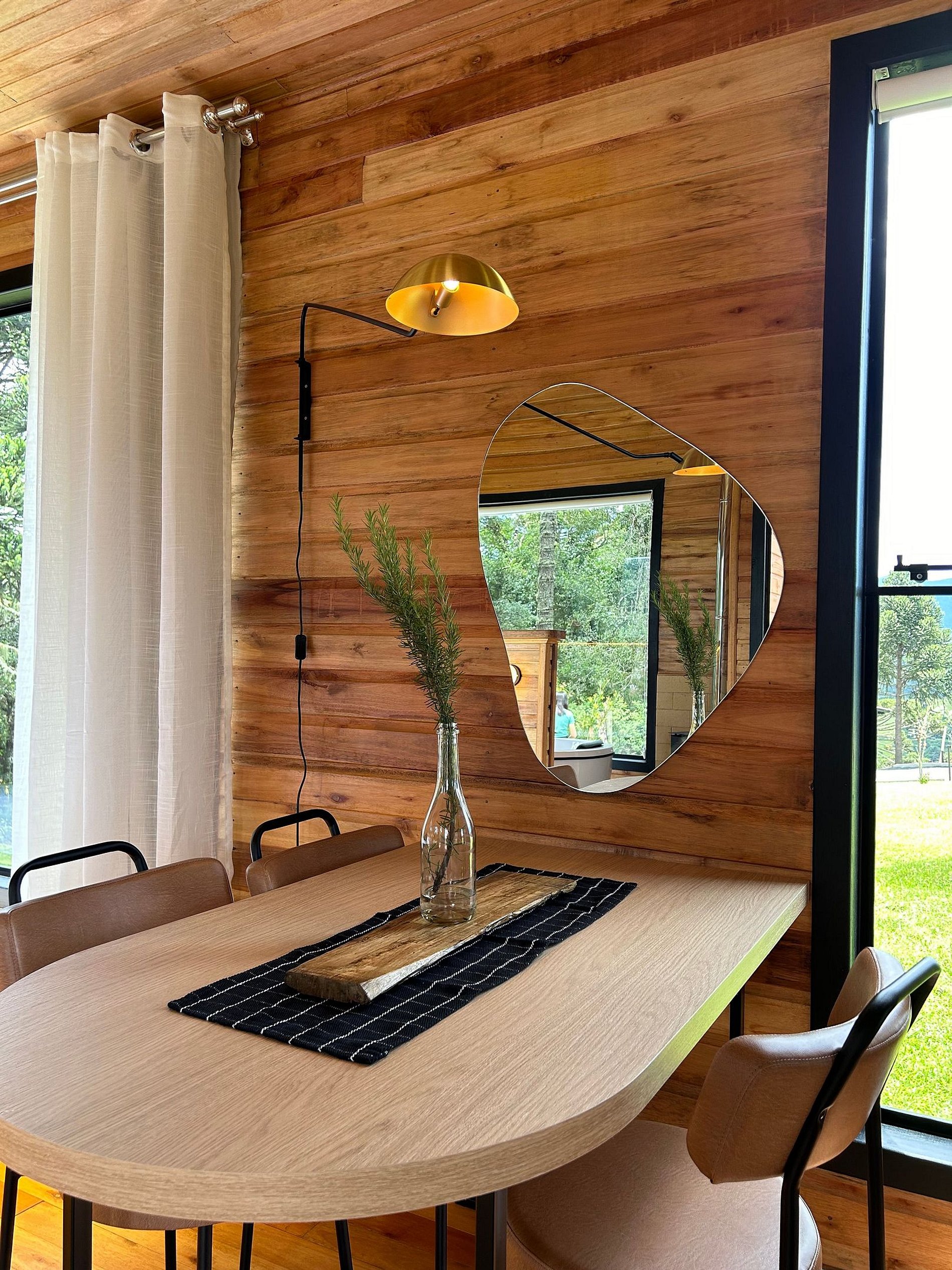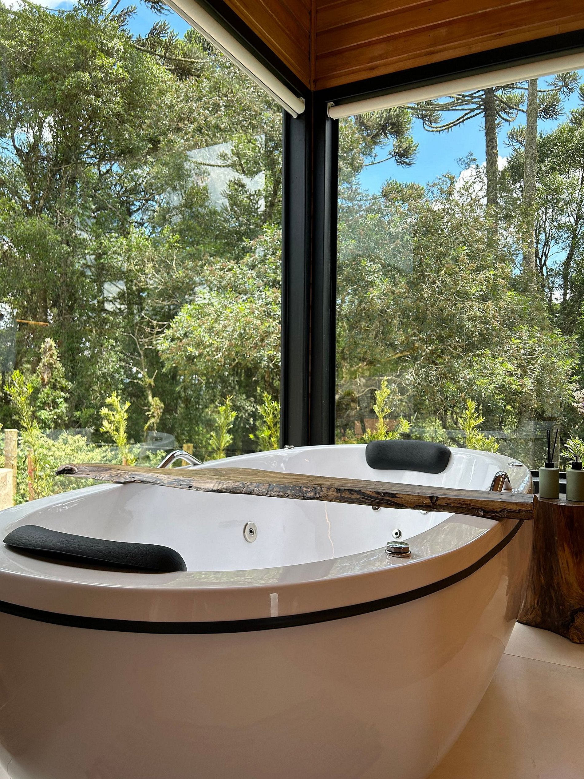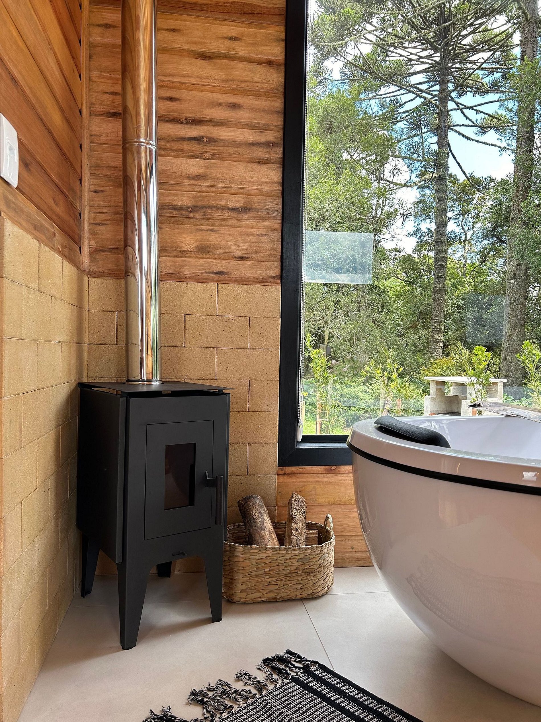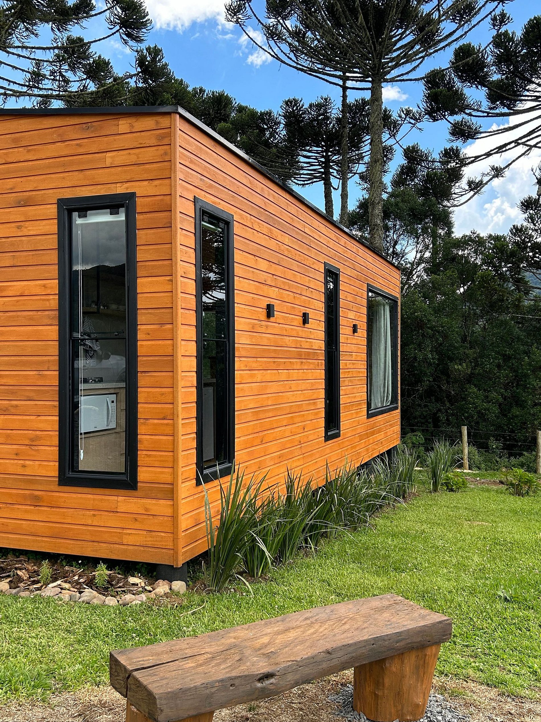 O chalé está posicionado em área de 8.000m2, com imenso gramado. Nesse espaço há, ainda, churrasqueira rústica, o Balanço da Liberdade e o deck exclusivo, com poltronas de madeira, incluindo um kit para a experiência de seu acendimento, com lenha, gravetos, acendedor e isqueiro.