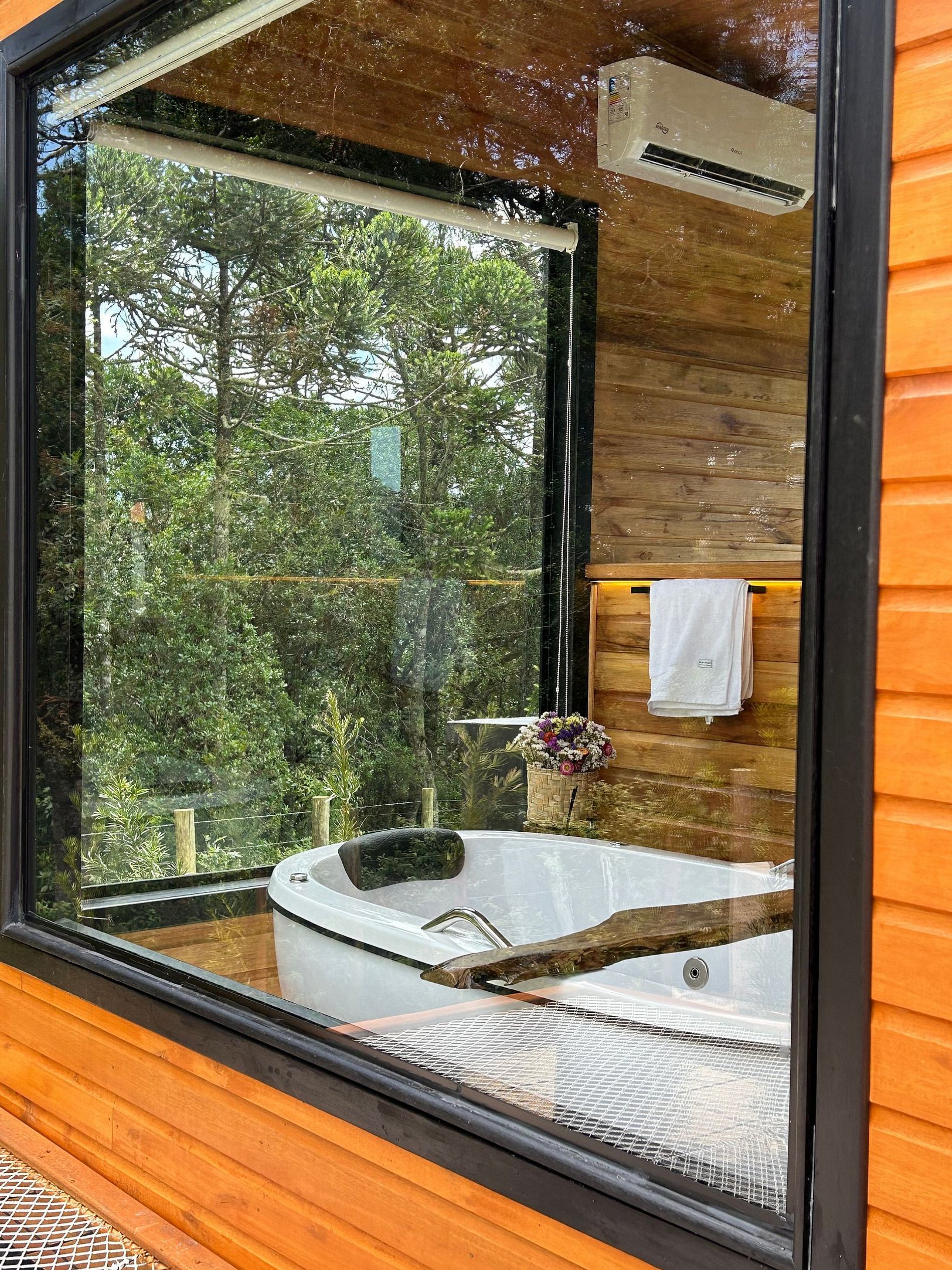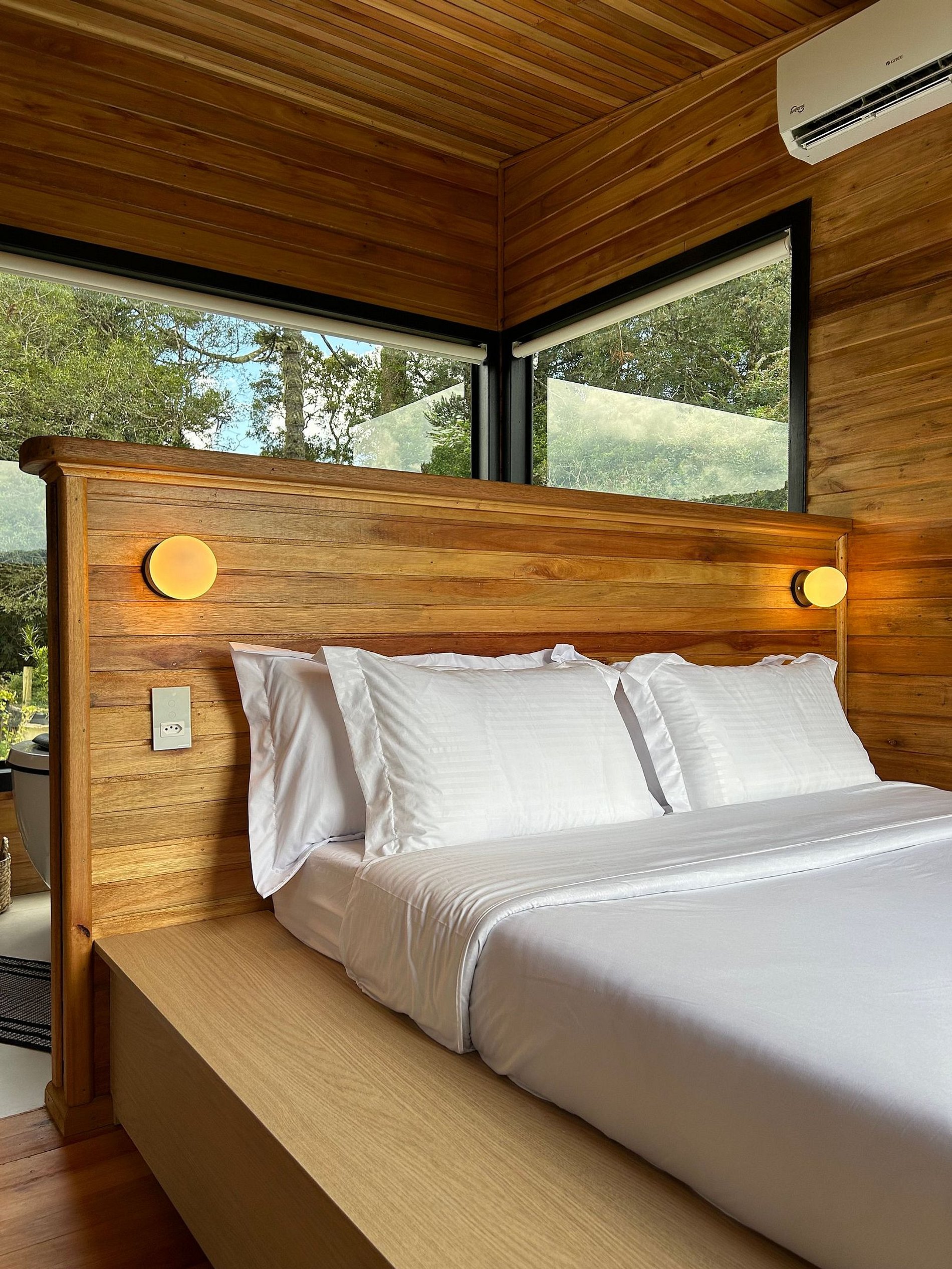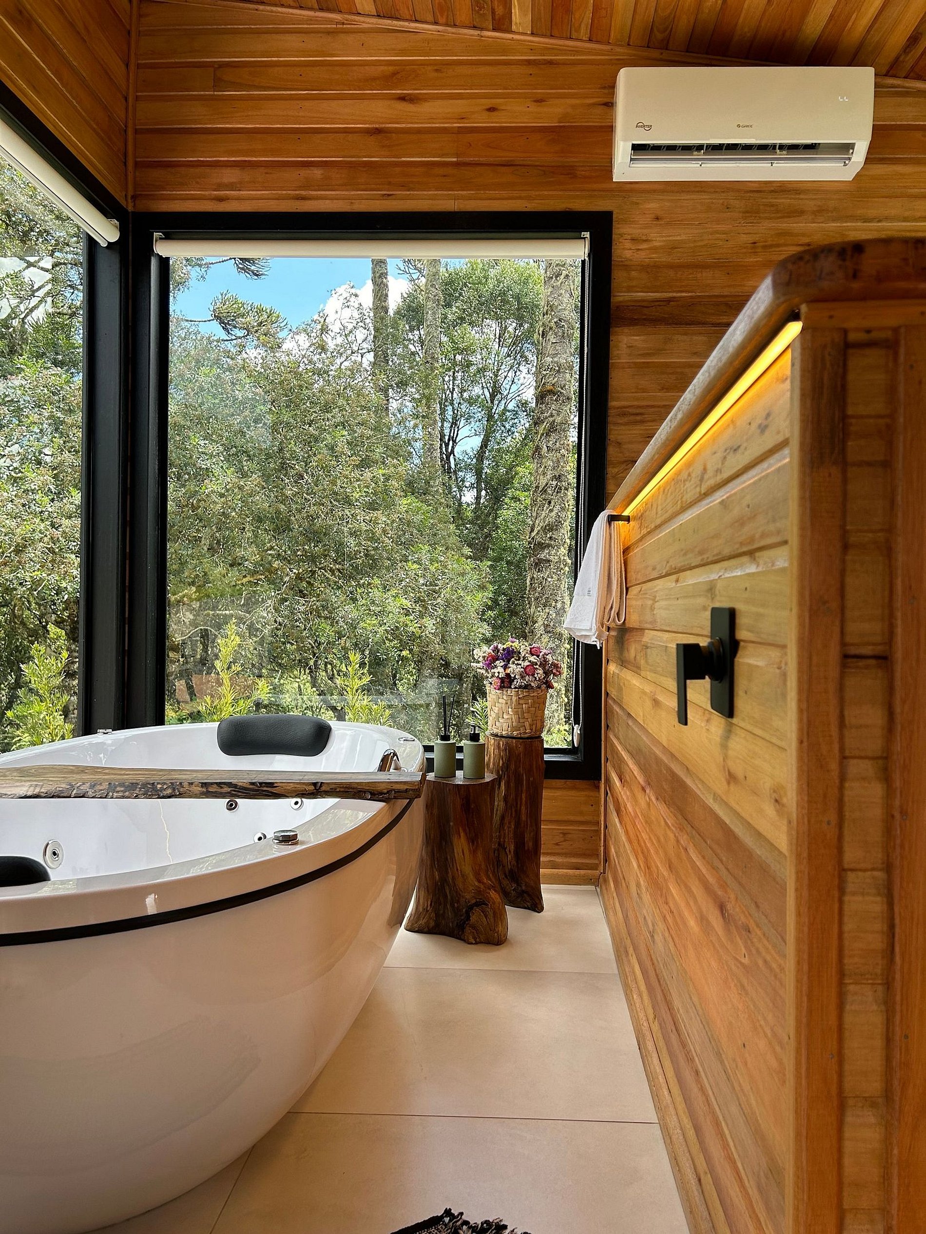 Chalé moderno e aconchegante, imerso na exuberância da natureza de Urubici, na Serra Catarinense. Conforto, privacidade e segurança. Equipado com banheira de hidromassagem, lareira, ar condicionado, TV, Netflix, Alexa, cama de casal, bicama com colchão de solteiro, frigobar, microondas, cozinha compacta completa, Wi-Fi e uma vista de tirar o fôlego. Acomodação perfeita para casais ou até 3 pessoas. Possui deck ao ar livre, com poltronas de madeira para relaxamento, diversão e contemplação.